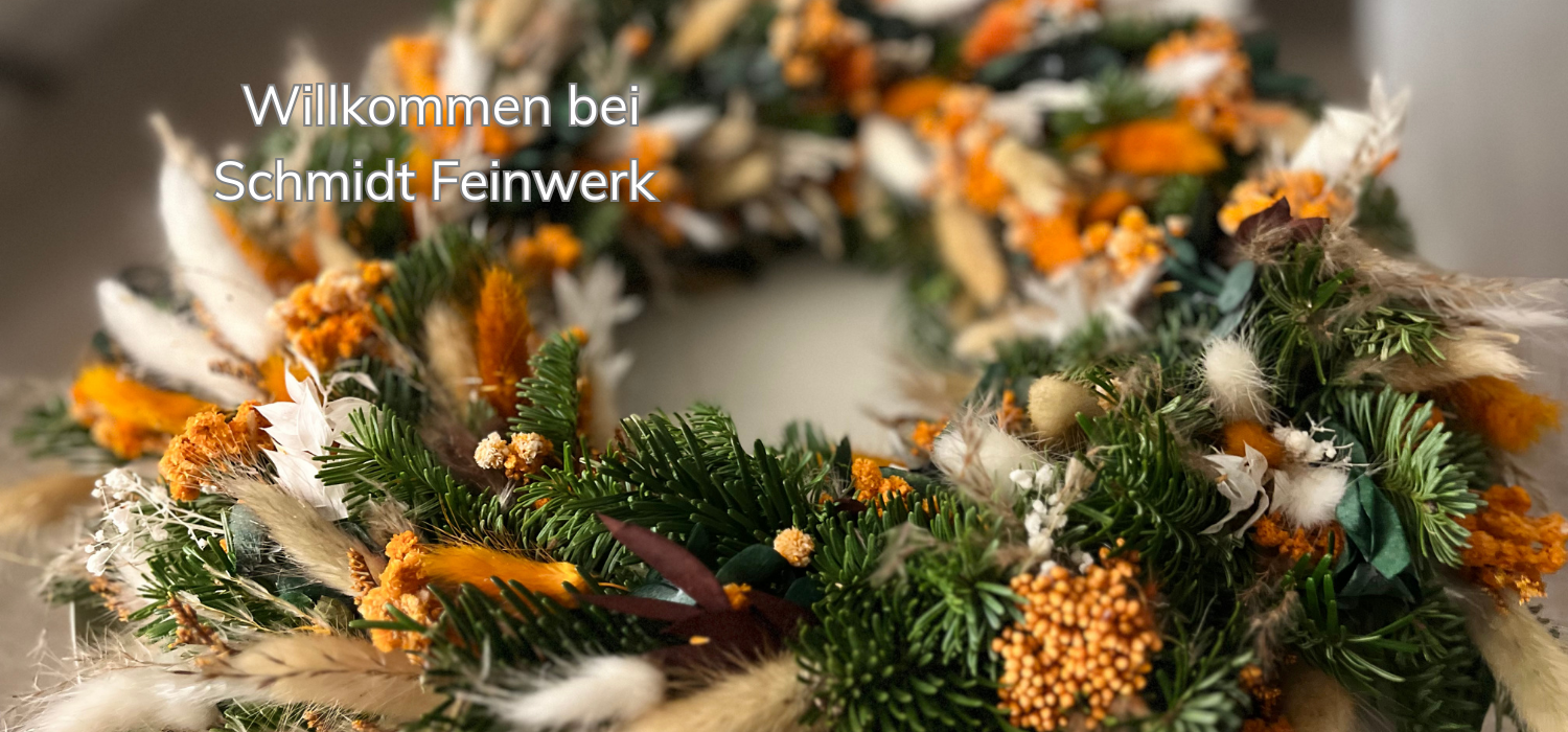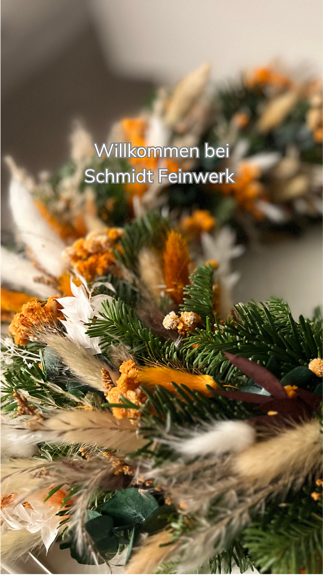 Adventskranz mit Trockenblumen und Gräsern - ein Kontrast in Orange